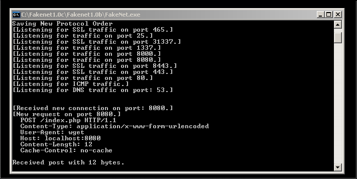 Before stepping over the CreateRemoteThread, I fired up FakeNet and ProcMon tools to capture any events that might happen: